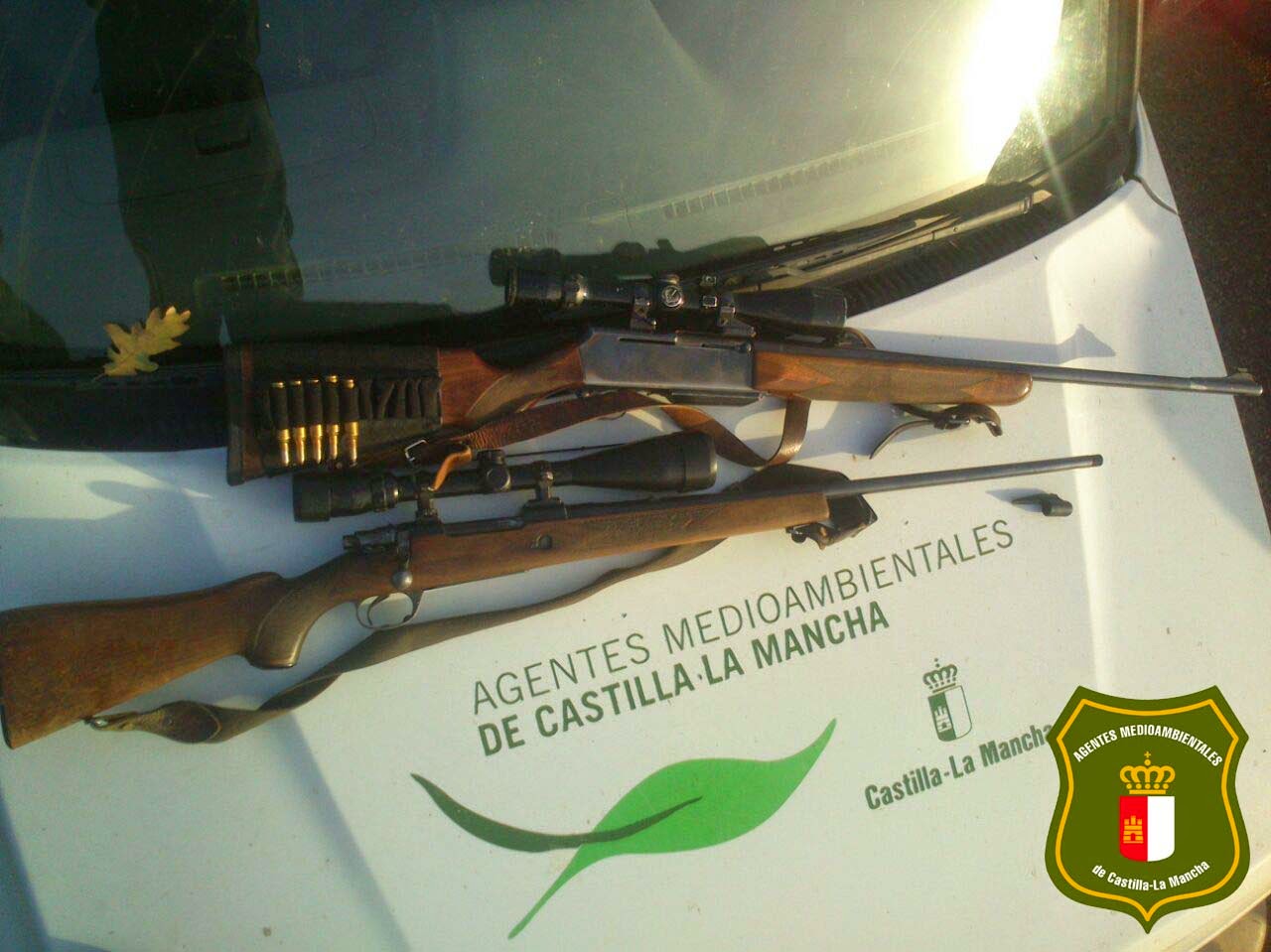 De los tres cazadores, uno de ellos confesó que estaba cazando, pero los otros dos negaron en todo momento su participación en dicha caza ilegal. Tras varios días de investigación e inspección de la zona, los Agentes Medioambientales encontraron las armas de los otros dos cazadores escondidas entre la vegetación del monte, en la zona donde se produjeron los hechos. Uno de los rifles ocultos tenía un cargador que por sus características se considera ilegal para la práctica de la caza y el otro poseía una modificación en el cañón para acoplar un silenciador, un medio prohibido. Las armas fueron decomisadas y entregadas en el puesto de la Guardia Civil correspondiente.